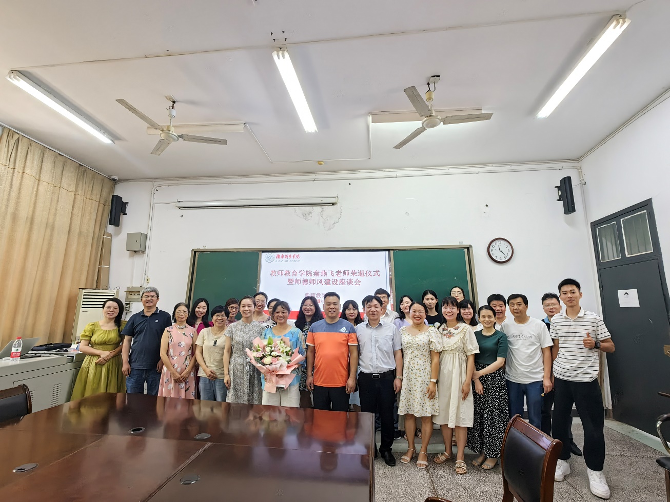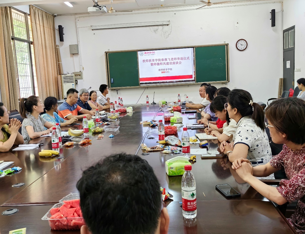 7月10日上午10点,球速体育在3教学楼114会议室为秦燕飞老师举办了隆重而温馨的荣退仪式暨师德师风建设座谈会。公司领导班子成员、教研室主任、党支部书记及部分教师代表、员工代表参加会议。仪式由球速体育党委书记王琦主持。