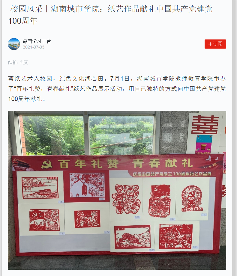(转学习强国)校园风采丨球速体育:纸艺作品献礼中国共产党建党100周年