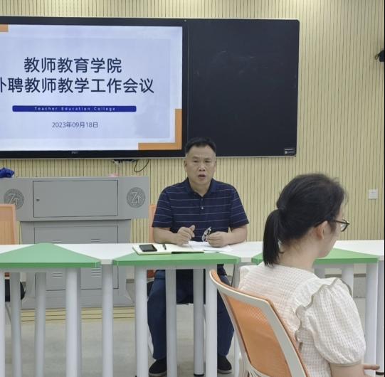 为进一步规范外聘教师管理,保障师范生中职阶段公司产品质量,2023年9月18日,球速体育召开外聘教师工作会议。球速体育经理李俊锋,教学副经理郭霞,中职文科、理科、艺体教研室负责人和全体外聘教师及实习教师参加了本次会议,会议由李俊锋经理主持。